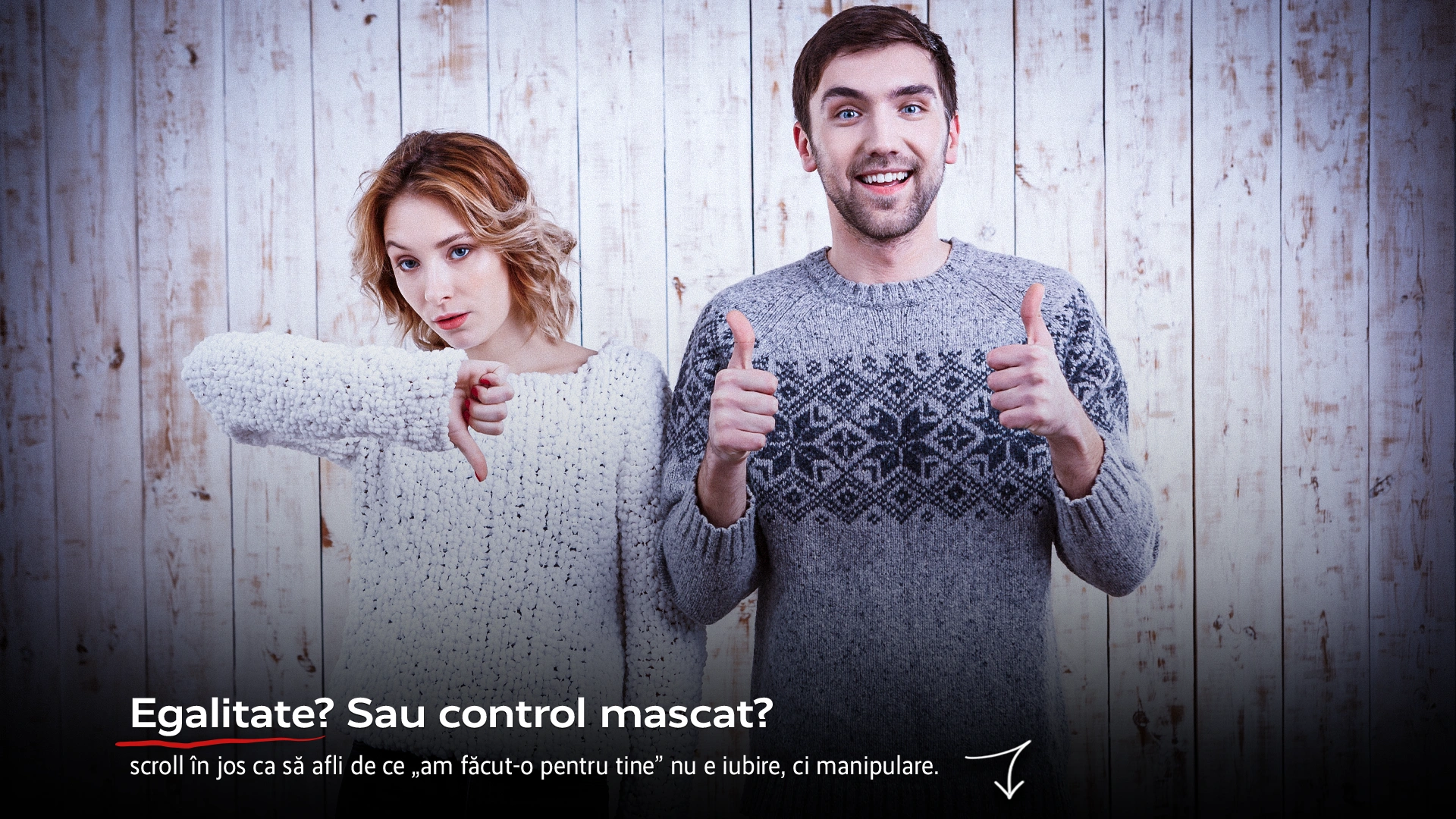 Creierul îți spune: „fac asta din grijă, ca să fie bine pentru amândoi”. Dar realitatea? Partenerul se simte „luat pe sus”, exclus din ecuație. Pentru că egalitatea nu e atunci când iei decizii singur „pentru binele celuilalt”. Asta e doar control cu un PR bun…